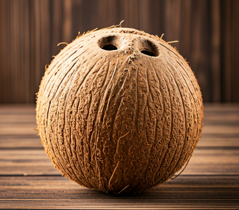The coconut is a large, round fruit that is covered in a brown husk. The husk is removed to reveal the white flesh of the coconut, which is called the copra. The copra is then dried and ground into coconut flour.